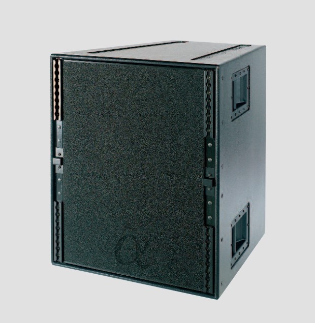 18″, 1400 W/ 6 Ohm, 107 dB SPL, 142 dB peak, 40 – 230 Hz (-3 dB), horngeladen, Flugschienen, Filzbespannung